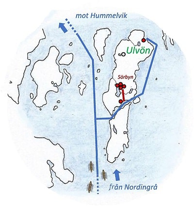 ”I ofvannämnda utdrag är Ulfön dock upptagen med gårdarna l o. 2 obrända, men 3, 4, 5 och 6 brända! 1-2 = Norrbyn, 3-6 = Sörbyn.”